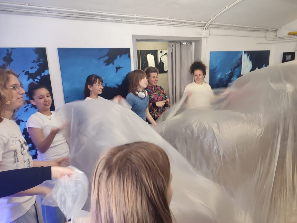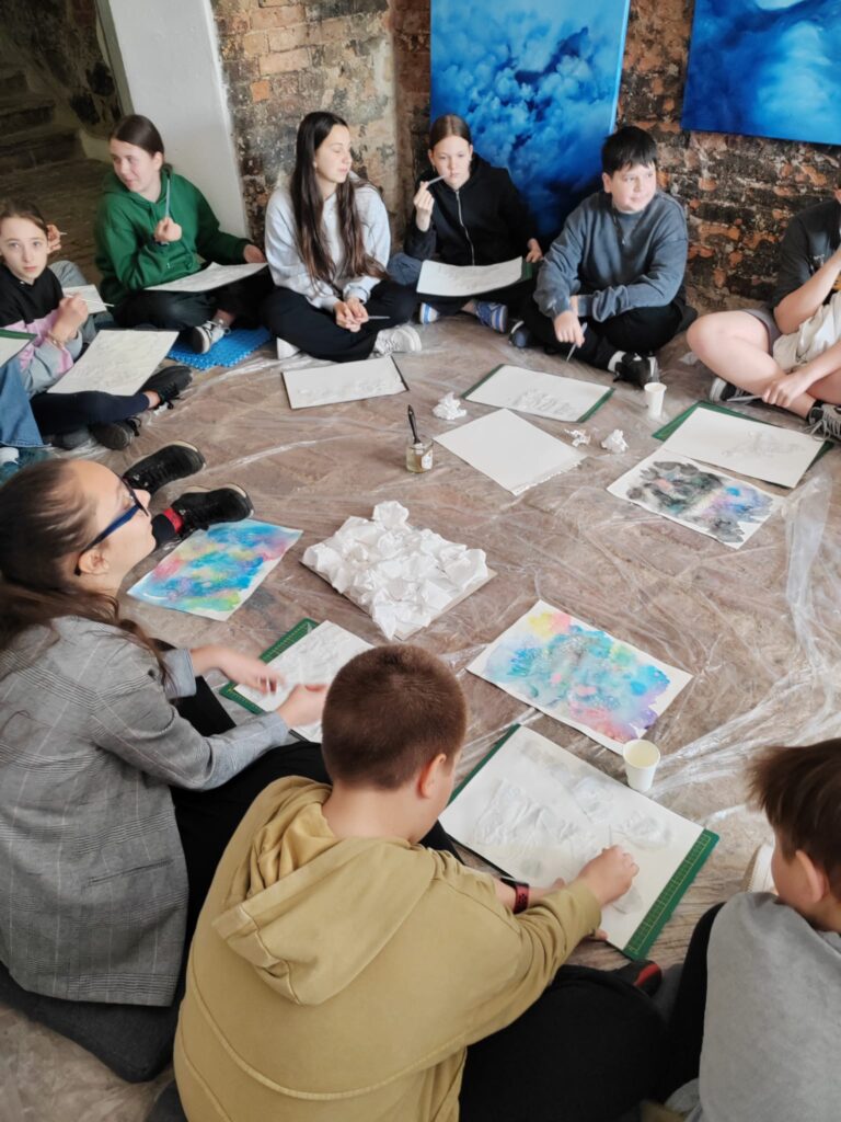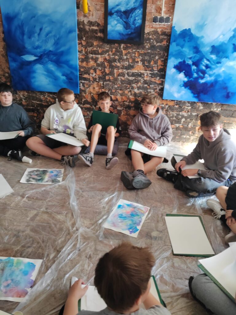 Galeria „Przestrzeń” to nowe miejsce na kulturalnej mapie Lubania – przestrzeń otwarta na działania artystyczne i edukacyjne, promująca sztukę w różnorodnych formach. Doceniliśmy „offowość” miejsca, tj. nie tylko estetykę, ale także podejście – mniej oficjalne, bliższe odbiorcom, zapraszające do dialogu i zachęcające do odkrywania sztuki na własnych zasadach. Już samo wejście do galerii nie drzwiami, a … przez okno, czyli tzw. „włam po sztukę”, okazał się dla szóstoklasistów nie lada atrakcją. Wszystko po to, by przełamać bariery i spojrzeć na sztukę z innej perspektywy. Podczas pobytu zwiedziliśmy galerię, wzięliśmy udział w dyskusji o sztuce, a na koniec uczestniczyliśmy w warsztatach, których tematem były … chmury. Wcielenie się w rolę artysty i doświadczanie jego sposobu pracy przyniosło wiele pozytywów. Pracowaliśmy w swobodnej atmosferze, bowiem na miejscu zamiast stołów mieliśmy poduchy i podkładki, a uczestnicy mogli bez ograniczeń eksplorować przestrzeń. To było bardzo wartościowe wyjście. Bardzo serdecznie dziękujemy właścicielce galerii – pani Barbarze Krupie-Kapuśniak za miłe przyjęcie i niezwykle kreatywne przeżycia. Opiekunami uczniów byli: pani Iwona Smolińska i pan Dariusz Wajcfelt.
