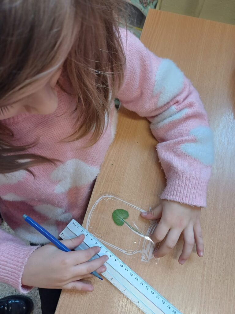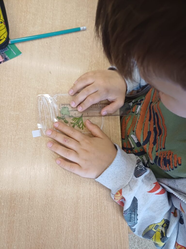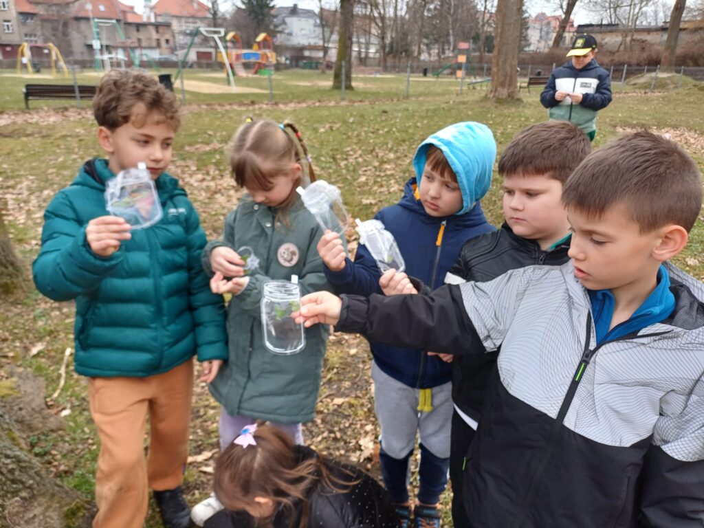 Uczniowie klasy 1a z entuzjazmem przystąpili do realizacji kolejnego modułu ogólnopolskiego projektu pn. „Natalka i Antek w świecie wielkiej matematyki”. Tym razem tematem przewodnim była „Matematyka w przyrodzie”, a nadejście wiosny stało się idealnym tłem dla naszych naukowych odkryć. Pierwszym krokiem było stworzenie mapy myśli, na której dzieci zapisywały swoje pomysły. Początkowe skojarzenia były proste, jednak po obejrzeniu filmu edukacyjnego mapa wypełniła się nowymi, fascynującymi pojęciami. Pierwszoklasiści szybko zrozumieli, że świat roślin i zwierząt jest pełen rytmów, liczb i regularnych kształtów. Wyposażeni w nową wiedzę, uczniowie zmierzyli się z kartami pracy, które wymagały nie lada skupienia. Najwięcej emocji dostarczyły jednak zajęcia praktyczne na świeżym powietrzu. Uczniowie zamienili się w matematycznych detektywów poszukujących pierwszych oznak wiosny. „Matematyka jest wszędzie – wystarczy tylko dobrze się rozejrzeć!” – to hasło towarzyszyło dzieciom podczas zbierania pierwszych listków, źdźbeł trawy i wiosennych kwiatów. Po powrocie z materiałami przyrodniczymi, każdy mógł samodzielnie dopatrywać się geometrycznych kształtów w płatkach kwiatów, analizować symetrię liści, dokonywać precyzyjnych pomiarów zebranych skarbów. Realizacja modułu pokazała uczniom, że matematyka to nie tylko cyfry na tablicy, ale fascynujący język, którym opisany jest otaczający nas świat przyrody. Klasa 1a udowodniła, że liczenie i mierzenie może być doskonałą zabawą.