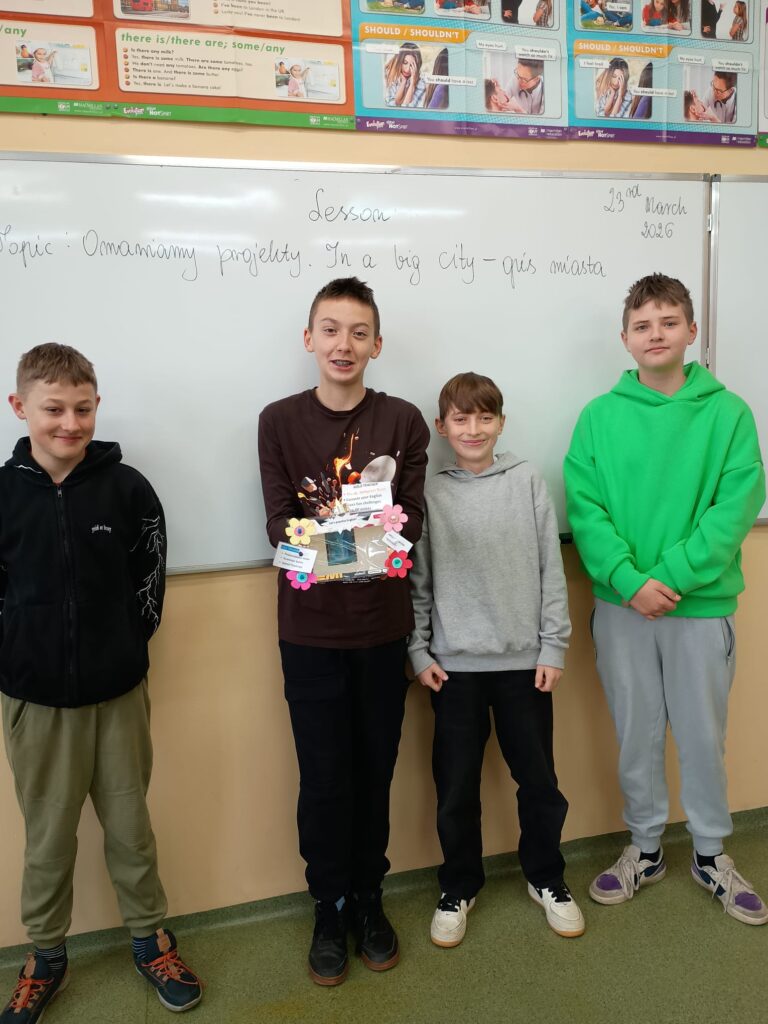 Podczas zajęć panowała świetna atmosfera — było dużo śmiechu, współpracy i twórczej energii. Lekcja pokazała, że nauka języka może być nie tylko pożyteczna, ale też pełna zabawy i inspiracji.
