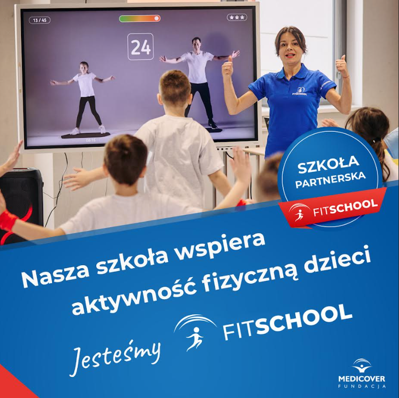 Nasza szkoła dołączyła do grona Szkół Partnerskich Programu FitSchool. To innowacyjne narzędzie wspierające nauczycieli edukacji wczesnoszkolnej oraz wychowania fizycznego, które w nowoczesny i atrakcyjny sposób zachęci uczniów do ruchu i dbania o zdrowie. FitSchool to platforma, dzięki której dzieci będą mogły uczestniczyć w zajęciach prowadzonych z udziałem wirtualnego trenera. Ćwiczenia będą przygotowane tak, aby były dostosowane do potrzeb i możliwości najmłodszych. Treningi prowadzone w tej formie należą do dynamicznych, angażujących i co najważniejsze sprawią naszym uczniom wiele radości. Szczególną wartością programu jest możliwość wykorzystywania treningów nie tylko podczas lekcji wychowania fizycznego, ale również w czasie przerw śródlekcyjnych. Mamy nadzieję, że krótkie aktywności ruchowe pozwolą dzieciom odpocząć od siedzenia w ławkach, poprawią koncentrację i będą wspierać rozwój psychofizyczny. O działaniach w ramach programu będziemy informować na bieżąco!