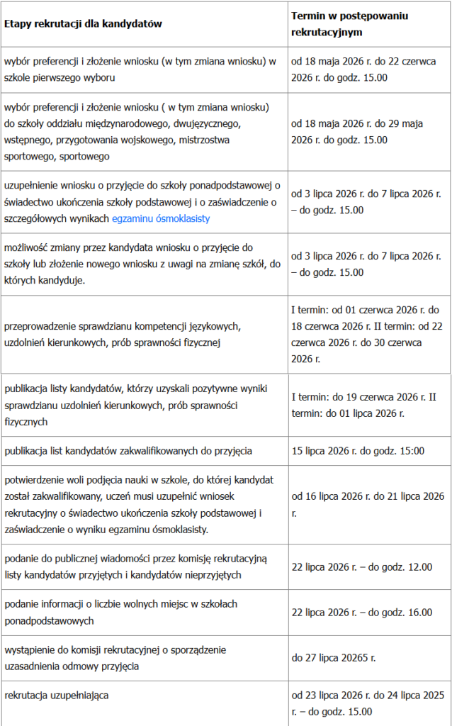Rekrutacja do szkoły średniej Oferta edukacyjna szkół średnich 2026/2027 REKRUTACJA – link do serwisu Harmonogram rekrutacji 2026 – licea i technikaw województwie dolnośląskim